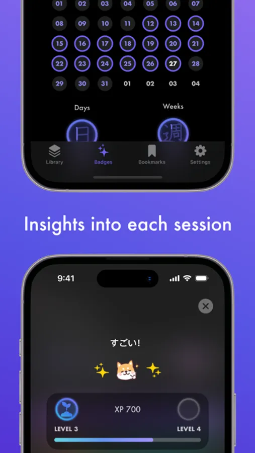• Earn Badges and track your daily progress