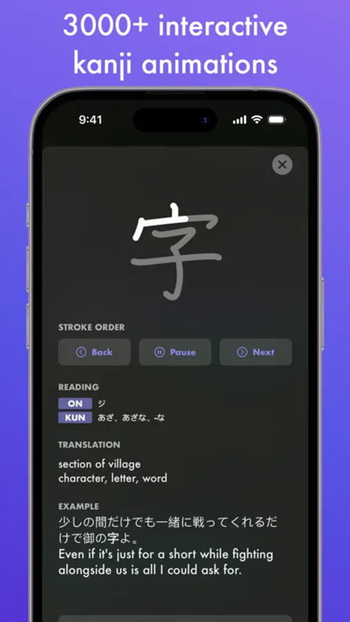 • Display stroke order animations for 3000+ Kanji