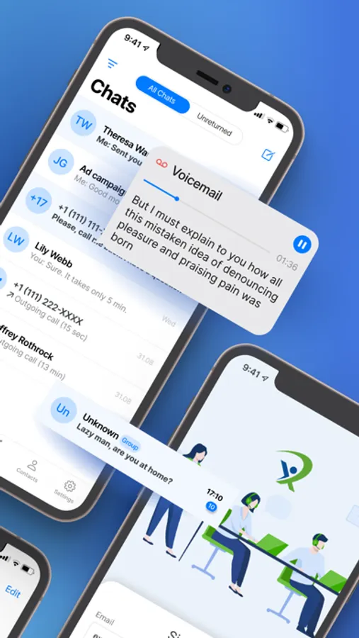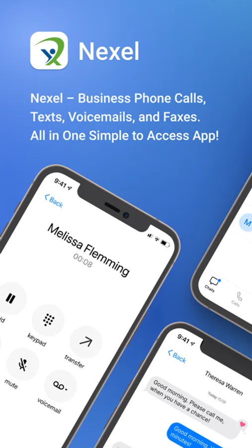 The Nexel app gives you access to a full office suite of feature-rich communications whether you are in the office, working remotely, or on the go. Connect from anywhere and have simple and immediate access to business calls, texts, voicemails, faxes, and more!