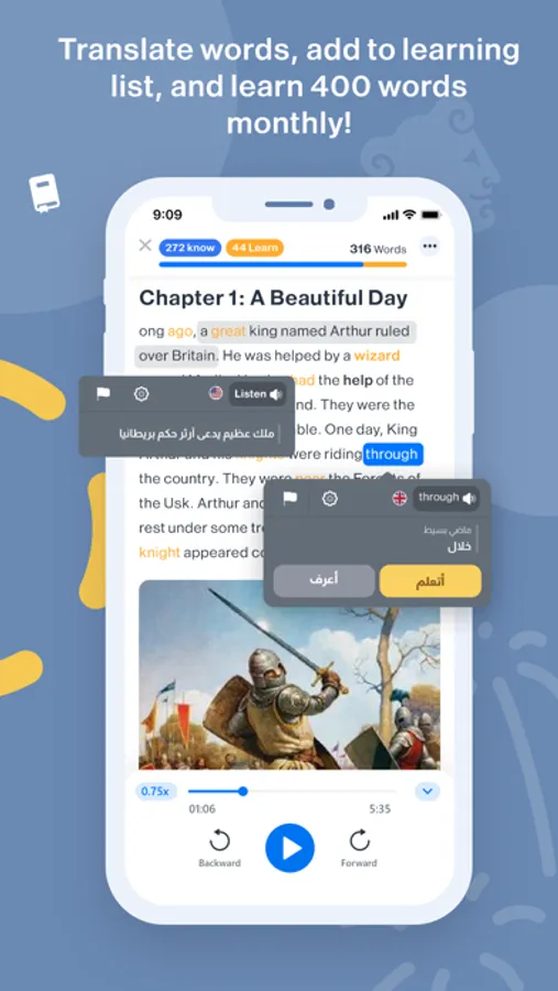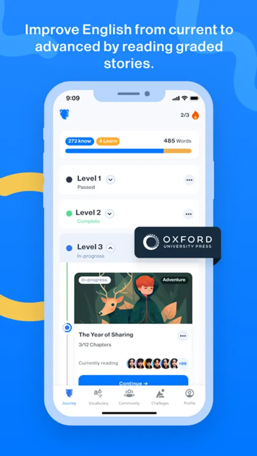 The first app in the Arab world for English language enhancement through captivating storytelling. It tracks your Progress from basic to professional proficiency while enjoying engaging tale and enhances Oxford content. Acquire 400+ words monthly while honing vocabulary and grammar through speaking, reading, and listening in English, now teaching English has become easier without restrictions..