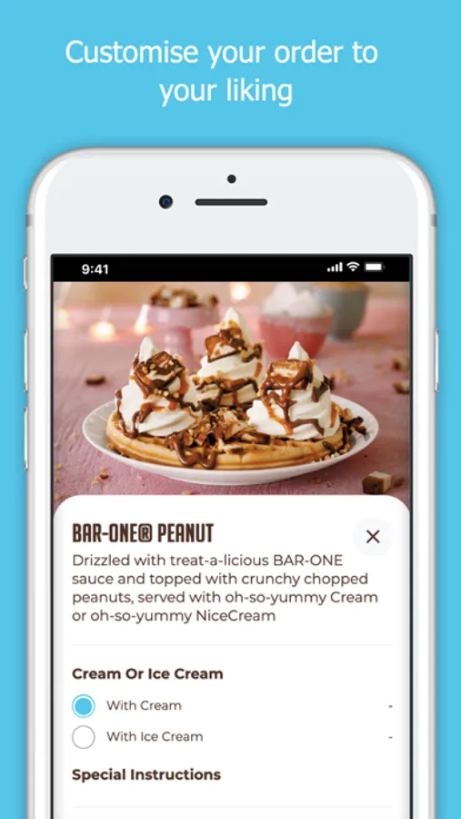 You can now order and pay for your favourite feelgood treats through the official Milky Lane app. Find your nearest restaurant, choose from our range of waffles, ice creams & other treats, customise your order and checkout.
