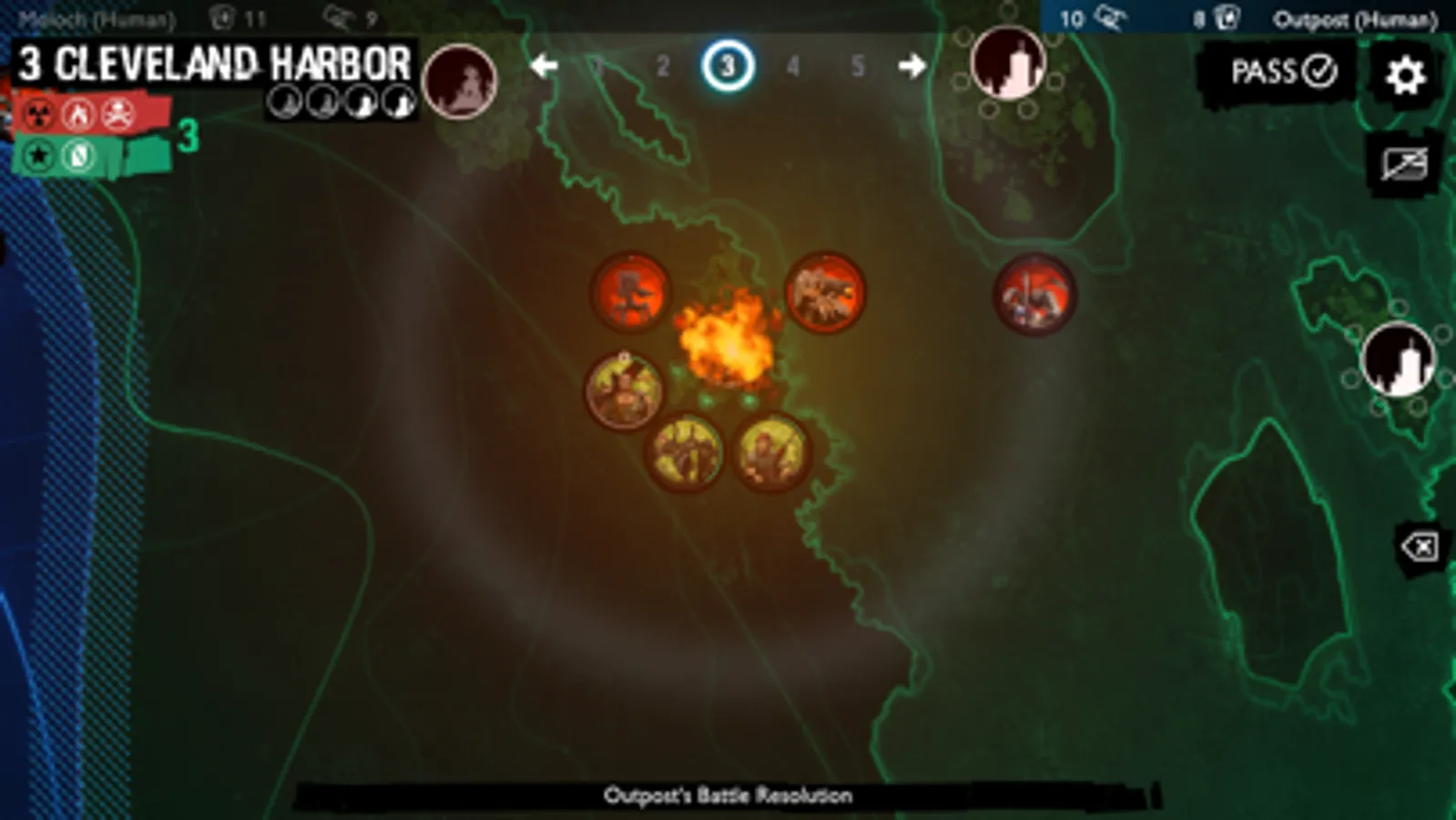 sequence of city boards. Moloch and the Outpost fight fiercely for each