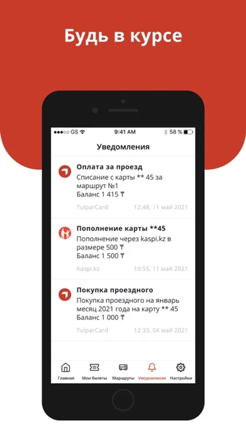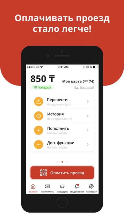 • Push-уведомления об оплате проезда, пополнении или переводе средств