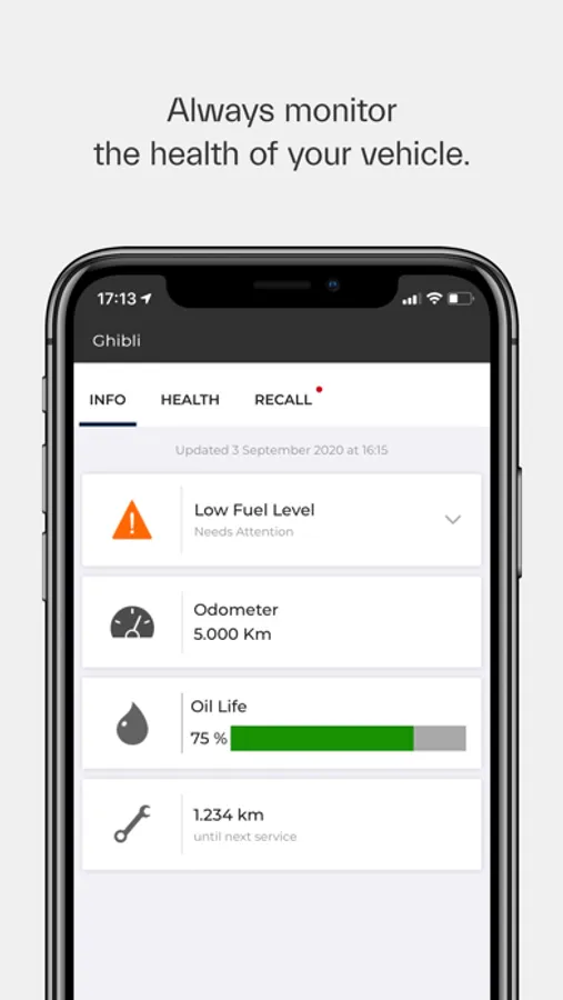 Travel without worries: Maserati Connect is there to help with dedicated support in case of an emergency or theft of the car. Through Maserati Connect you can also set specific alerts to monitor your vehicle when you are away and book services with your favorite Maserati dealer.