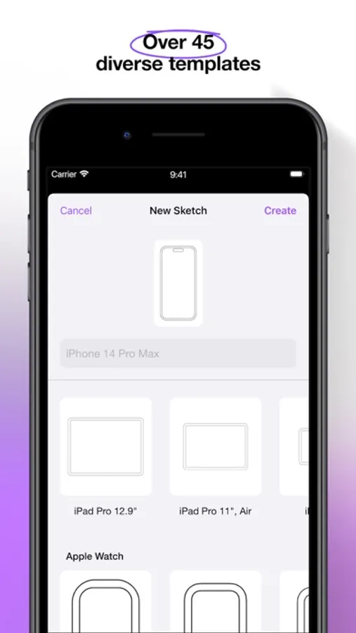 Mockup provides more than 45 device templates in two orientations, allowing you to easily visualize your ideas within the intended frames. With Apple Pencil, sketching projects is more enjoyable and seamless than ever.