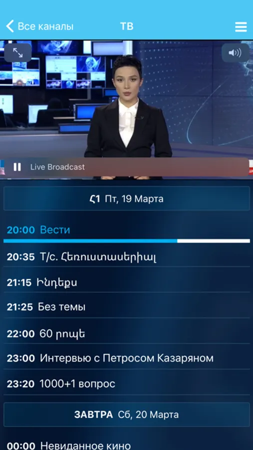 ⁃ online broadcasts of the leading TV channels of Armenia and other countries in different languages of the world,