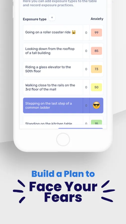 Overcoming fears (using exposures) - CBT is highly effective for dealing with specific fears such as: fear of heights, claustrophobia, fear of animals, social anxiety, etc. As part of the treatment, exposure exercises are used to gradually deal with the scary subject. The Marbles app enables you to create a central practice table and to keep track of every practice you do.