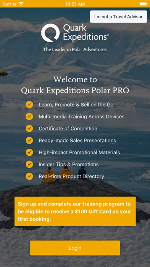 Welcome to the Quark Expeditions Polar Pro Training & Sales Companion. This app has been uniquely designed to be a comprehensive mobile resource for Arctic and Antarctic itineraries from the Leader in Polar Adventures, Quark Expeditions. By providing vital product intel, engaging promotional opportunities and practical booking tools to close the sale, you now have anytime/anywhere access to discover and sell Quark Expeditions.