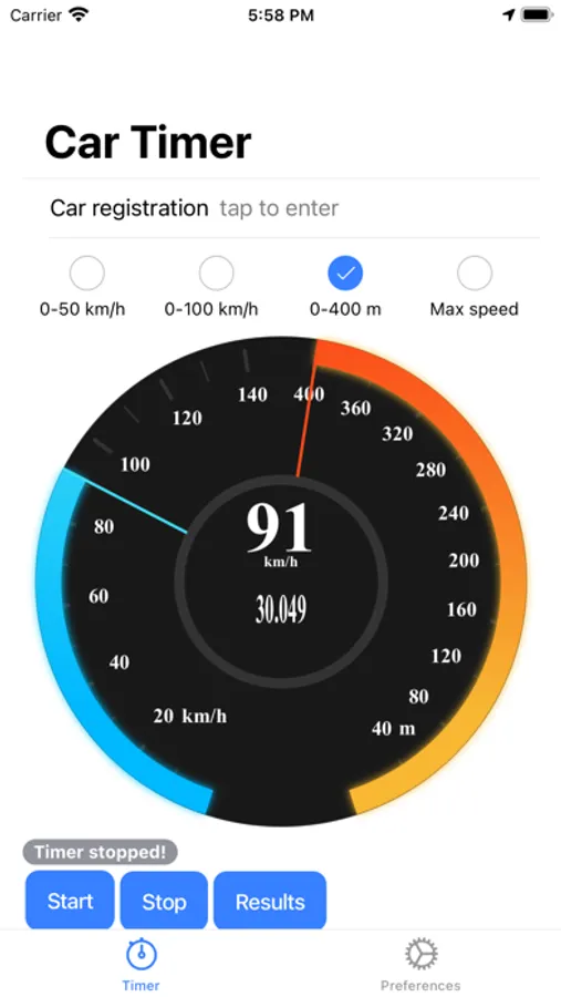 Car Timer was built to help you time the acceleration and the top speed of your car.