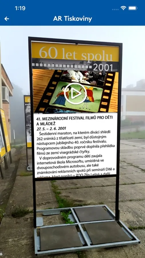 Chcete-li si rozšířenou realitu vyzkoušet a na ZLÍN FILM FESTIVAL se nedostanete, v aplikaci v sekci Informace naleznete odkaz na stránku o aplikaci, kde najdete ke stažení ukázkový podklad. Ten si zobrazíte na monitoru nebo vytisknete a vyzkoušení již nic nebrání.