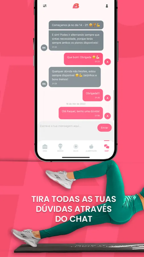 - Chat para esclarecer dúvidas com a treinadora Raquel Antunes;