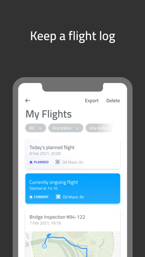 Dronetag brings an all-in-one solution for safe drone flights that allows you to comply with the new European regulations, manage your fleet and stay informed about your current flights. Our vision is to provide drones with safe access to the airspace and to prevent their accidents.