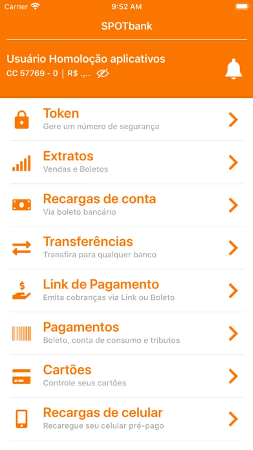 Nele você controla todo o seu financeiro, realiza transações bancárias, pagamentos, transferências, conferir seu saldo, recarregar seu celular e muitas outras operações em um só click.