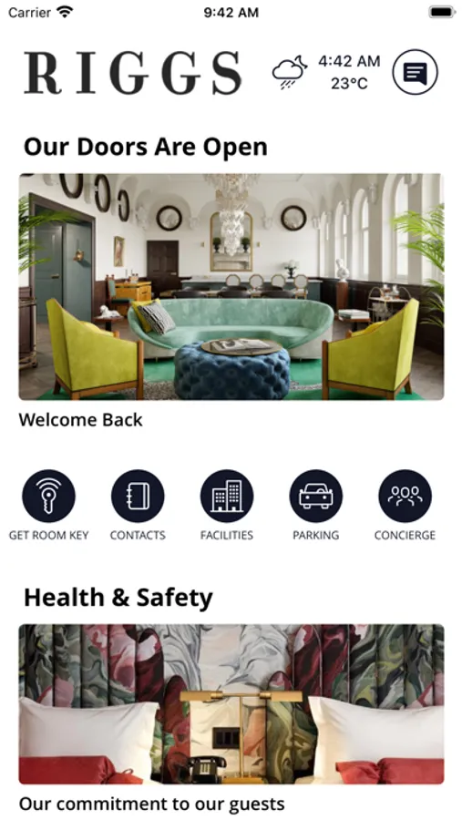 If you are looking to book a stay, or check-in , make a reservation at our award-winning Brasserie; Café Riggs or at our new elevated rooftop bar; Rooftop at Riggs, reserve a gym workout or borrow one of our city bikes, you can download the app now and begin your journey with us.
