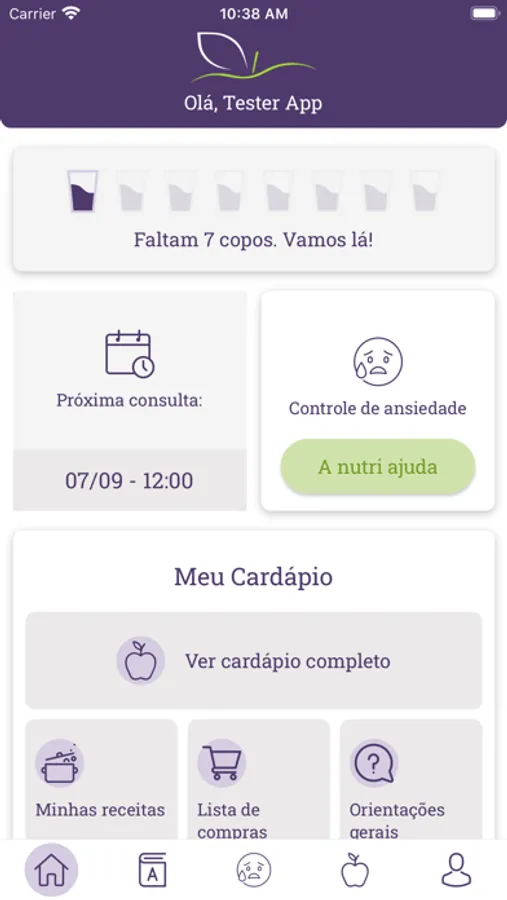 - Lembrete de hidratação.