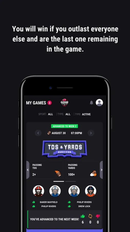 Survivor contests are eliminator mode contests where a user has to provide all the picks correct against the stats that are set in the contest to advance to the next day in terms of “NBA and MLB“ sports contests and for “NFL“ context to advance to the next week.