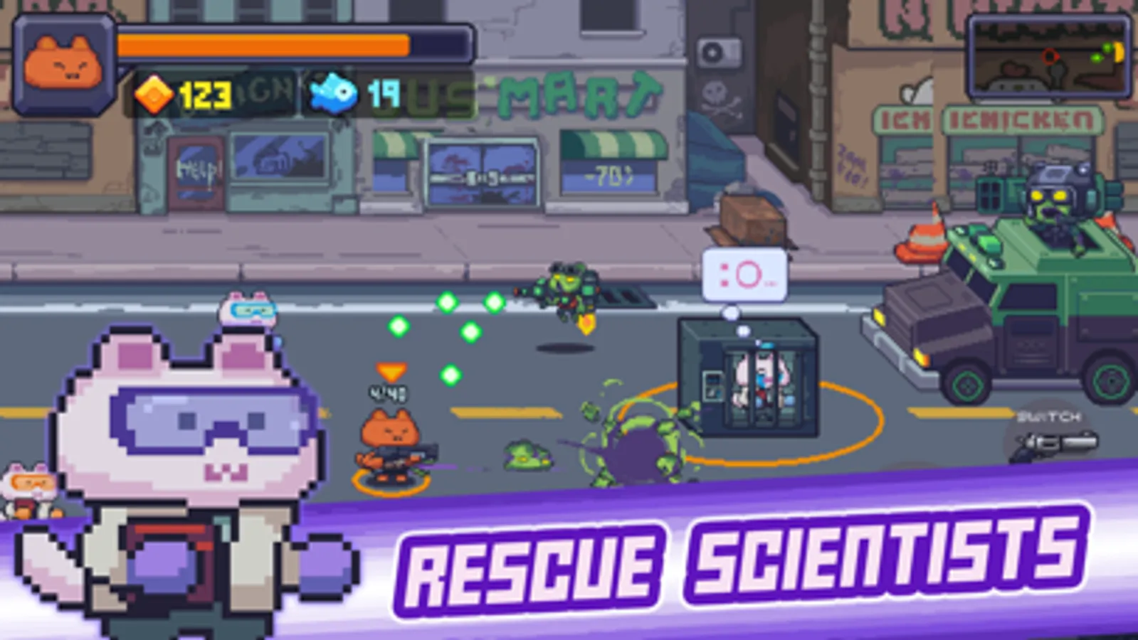 Play the best RPG action-packed zombie cat shooting game with the best adorable art where you can assemble and upgrade your cat gunners, and shoot up legion of relentless zombie cats. Challenge yourself and defy the toughest, brainless and undead pixel zombie cats bosses. Do you have what it takes to be the cat defender and free the Cat Planet from zombie invasion?