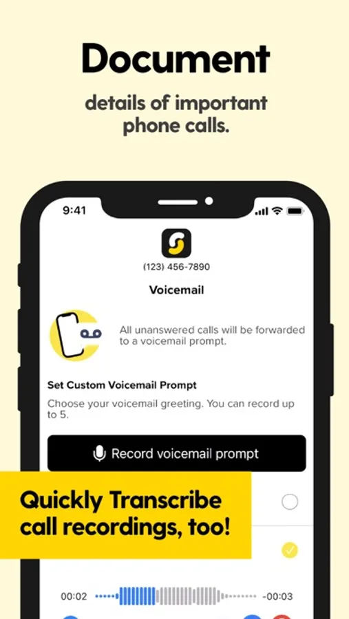 • CUSTOM VOICEMAIL - record a separate unique voicemail for your new number.