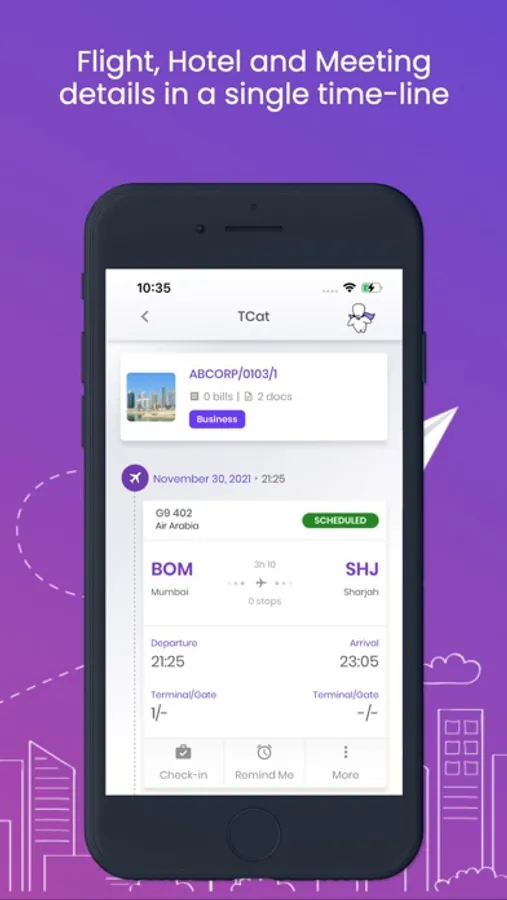 * Set reminders for check-in, boarding, meetings etc