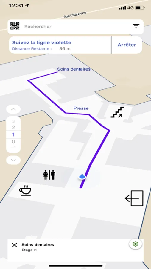 Un rendez-vous prévu ? Vous venez rendre visite à un patient ? Une fois l’application CHU Limoges installée, vous serez orienté(e) précisément au sein du CHU Limoges. Il vous suffira alors de renseigner votre lieu de rendez-vous ou de rechercher un point d’intérêt, et l'application vous guidera efficacement à l'intérieur de l'hôpital jusqu'à votre destination.
