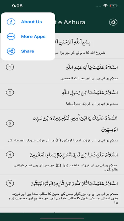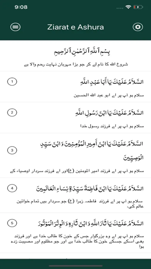 With this application, you can access full text of Imam Hossein ziyarat, at the day of Ashura or ziyarat e ashura (زیارت عاشورا) with beautiful sound of Mr.Farahmand and Persian translation.
