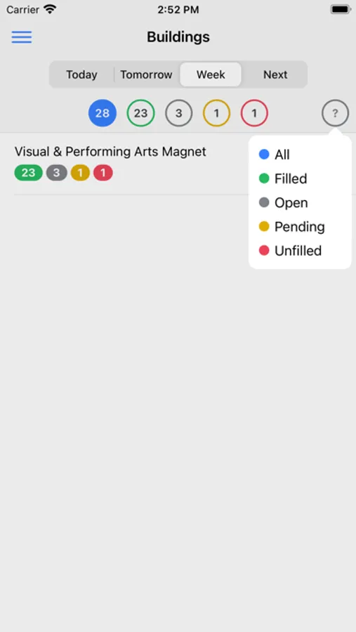 • View and filter filled, open, pending and unfilled time off requests for each building.