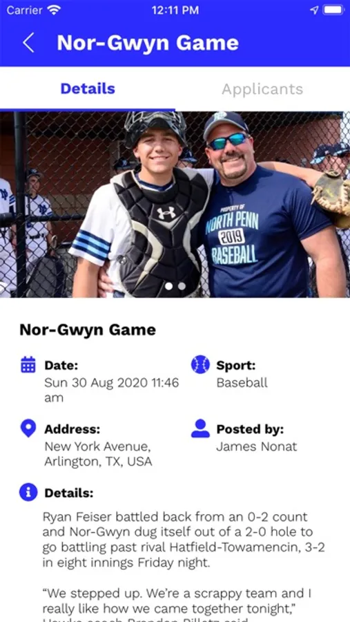 Find games that are needing your expertise in various locations. You can apply directly to the app and get accepted into it, too!