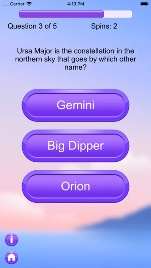 Answer 5 trivia questions from the category of choice, and earn one spin per correct answer. You might even learn some useless knowledge to showcase at your next party! Each question is timed. You'll have 15 seconds to answer the question. If time expires, no spin is awarded.