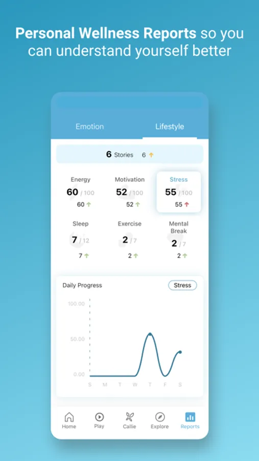 • Track your wellness journey with fun, engaging weekly reports about your mental health