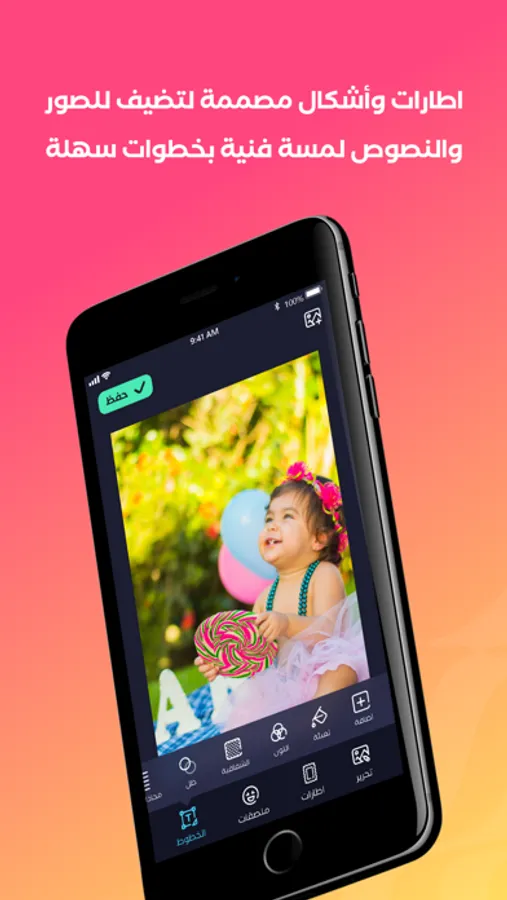 الكتابة متاحة على مساحات متنوعة مثل التدرج اللوني والخلفيات والصور من الكاميرا