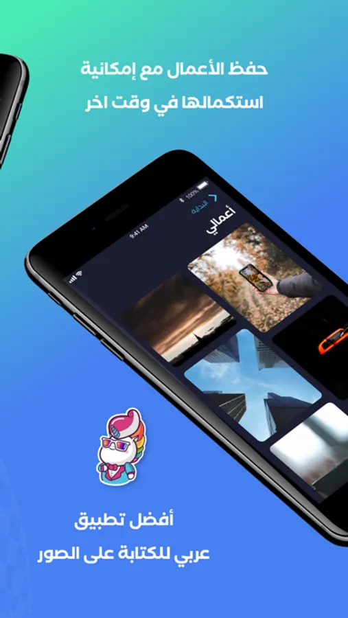 حفظ الأعمال مع امكانيه استكمالها في وقت اخر بالإضافة لخاصية المشاركة بجودة فائقة على جميع شبكات التواصل الإجتماعي