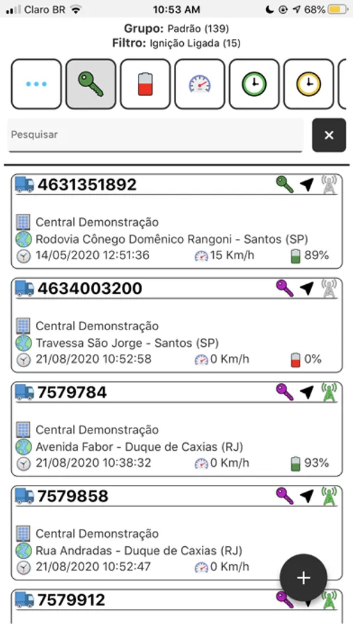- Pesquisar o histórico por data GPS ou de Recebimento