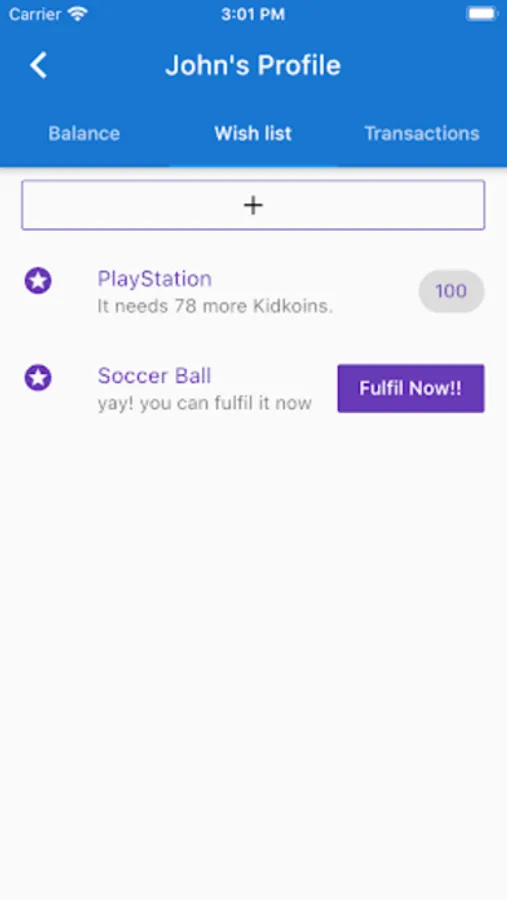 - Create wishes in your child's personalised wish list with required costs