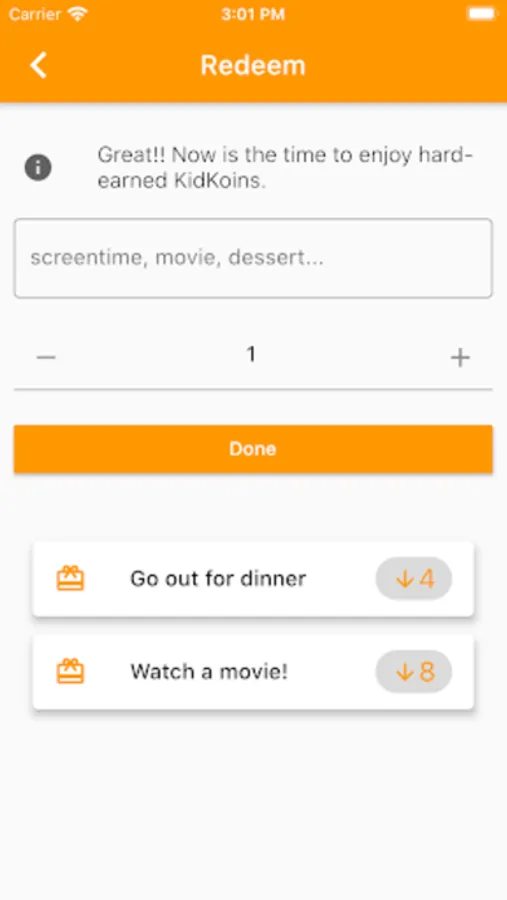 - Reward kids for anything with a currency called KidKoins to encourage good behaviour