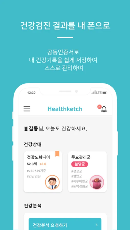 헬스케치는 본인의 현재 건강상태를 나타내는 건강검진결과의 임상지표를 활용하여 건강지표를 분석하고, 분석 결과에 따른 맞춤 건강관리를 제공합니다.