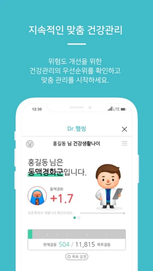 - 헬스케치 내 건강관리서비스인 ‘닥터헬씽’에서는 Apple Health를 통해 수집된 걸음수를 동기화하여 매일매일 1년후 건강생활나이를 예측합니다.