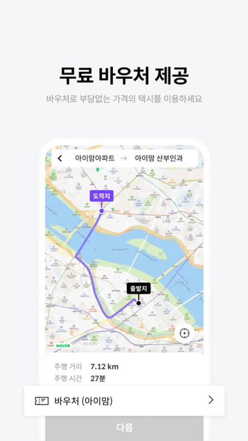 아이맘택시는 회원가입 시 발급되는 전자 바우처로 탑승이 가능합니다.