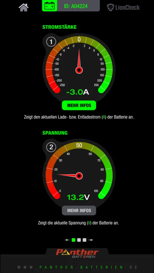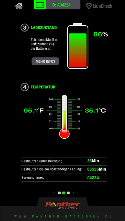 Die Lion Check APP dient zur Überwachung vieler Funktionen der LION75 und LION100 Lithium Ionen Batterien der Panther Batterien GmbH.