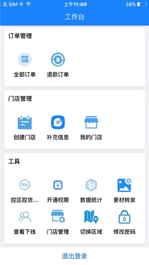 1、工作台:提供门店管理、门店订单等功能模块入口;
