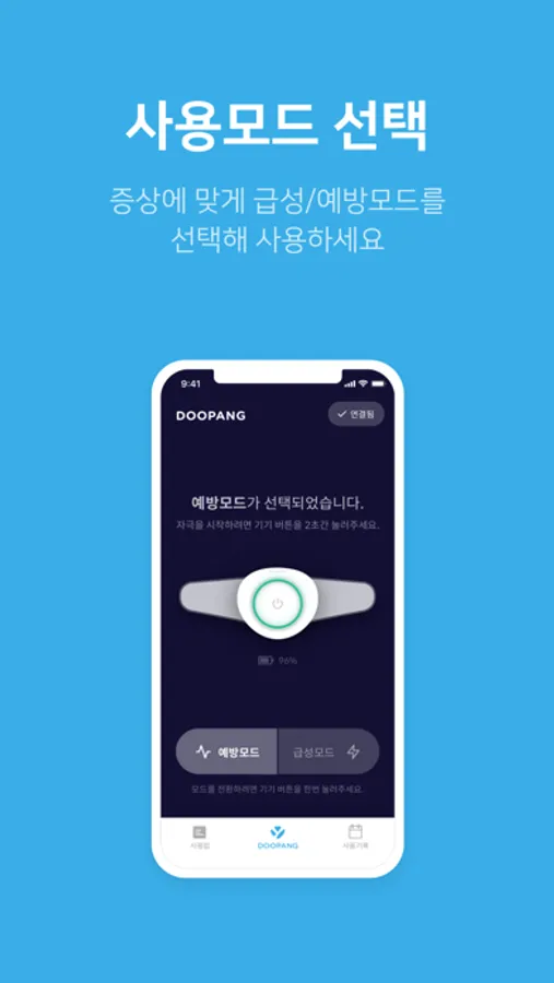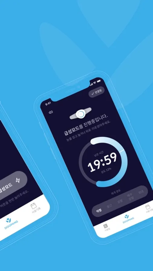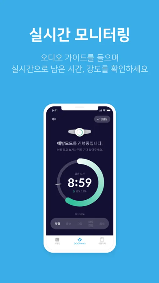 두팡 매니저 앱에서 남은 시간과 실시간 강도를 확인할 수 있으며 오디오 가이드가 제공됩니다.