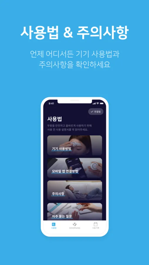 두팡 기기와 매니저 앱을 연동해 실시간으로 기기와 함께 더 편리하게 이용해보세요.