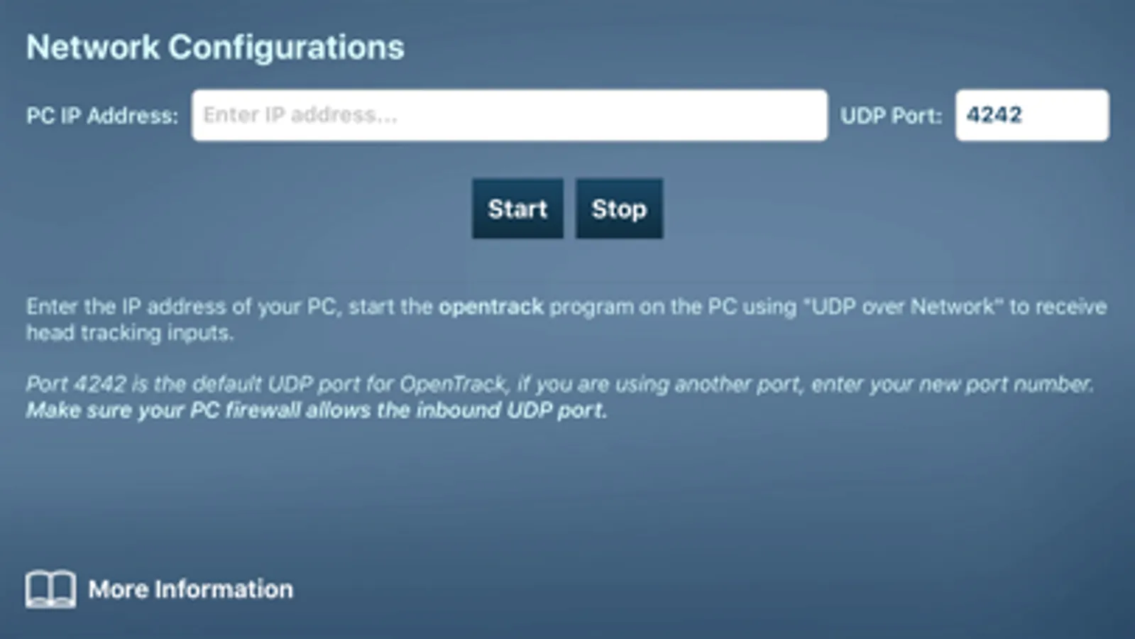 - Open Head Tracker app on your iPhone, set your PC's IP address, then start