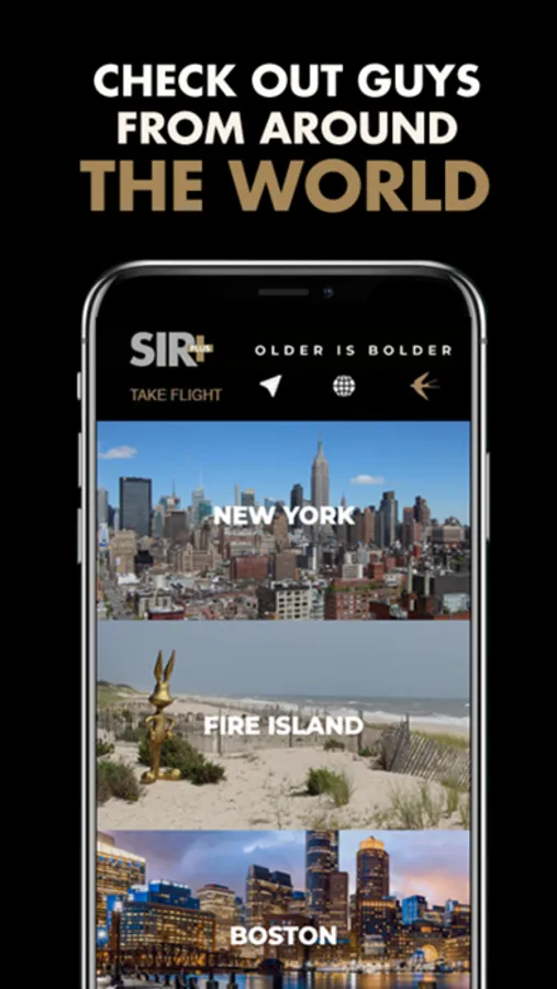 SIRPLUS provides so many ways to find MR. RIGHT! Use the EXPLORE section to check out mature men who are closer than you think on your LOCAL page. You won’t miss a thing in your favorite city when cruising TAKE FLIGHT and you have an open ticket to spot other men like you everywhere on the WORLD page…. don’t forget to let them know when you’re coming to visit by adding your trips to your profile! Keep track of everyone you’re looking at and see who’s looking at you on VIEWED and VIEWED YOU!