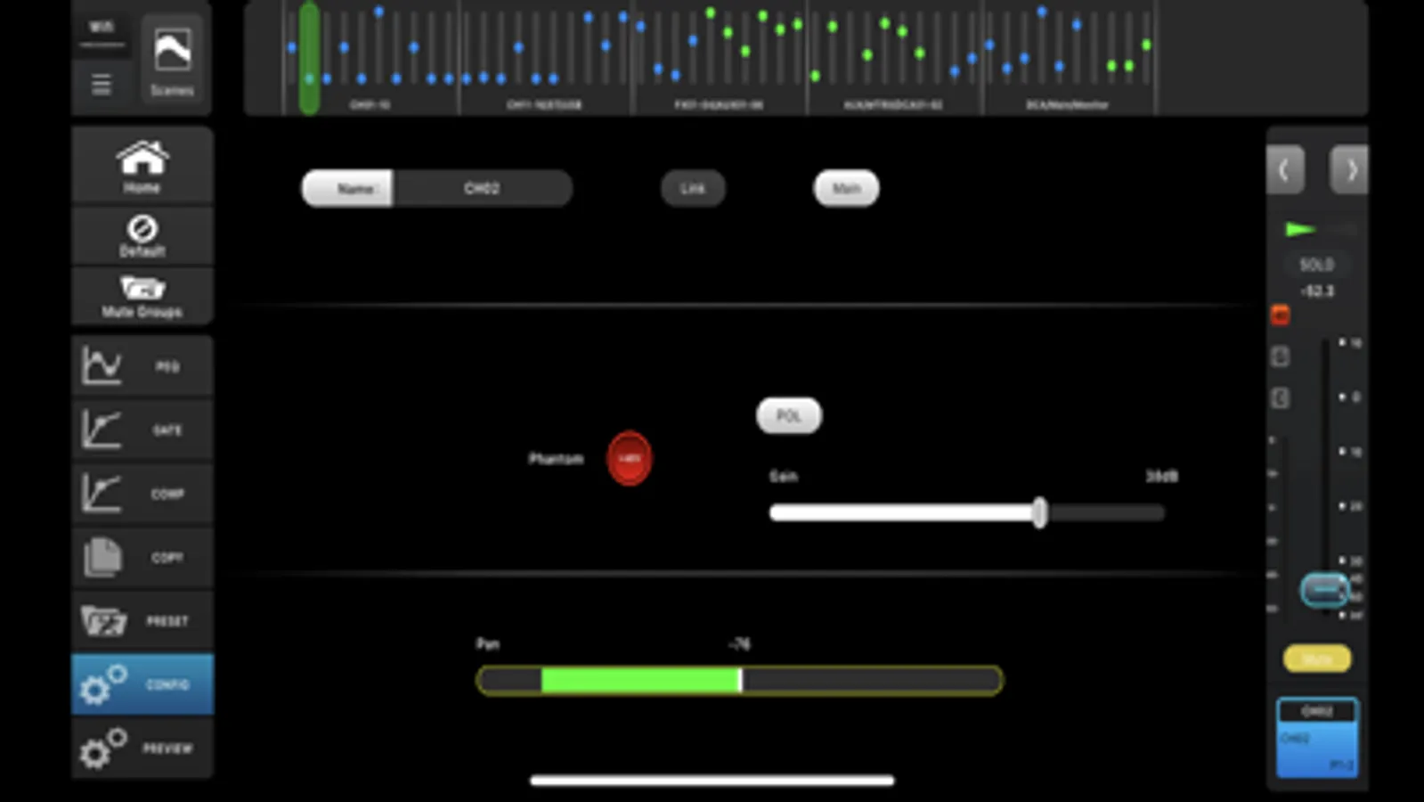 * 所有Mic / Line输入通道均配置 48V幻象电源、极性切换( Polar )、噪声门( Gate )、压限器( Comp )、四段参量频率均衡( PEQ ) / 含高低架滤波器、高通滤波器( HPF )、低通滤波器( LPF )。