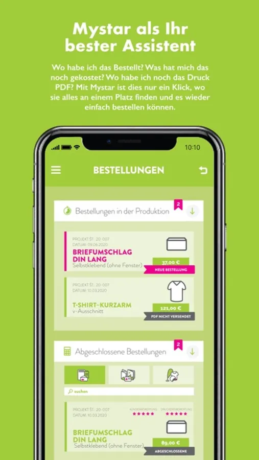 The implementation of the Mystar application not only presents you with a new app on the market, but in addition to its services, it also offers you a group of experts who will always act as a link between you and the printery during the project. The team guarantees you the review of your print data and support in every situation and with every question. Nothing is left to a chance or to the customer itself. With the Mystar app we want to take away from you the well-known doubts such as: “Where did I ordered that?”, “How much did it cost?”, “Where is my printed .pdf?”. With just a few clicks you can find all your data collected on Mystar."