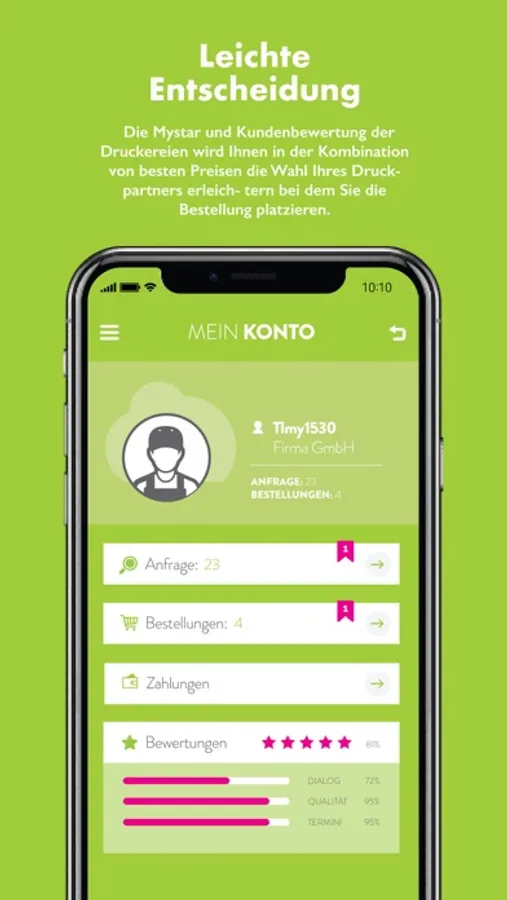 "MyStar Print is a mobile and web application for your printing orders. The user can send an application for any printing project with just a few clicks to a large number of printeries carefully selected by Mystar. You will receive offers in response to your inquiries from several printeries at the same time within 24 hours. Visible prices and customer ratings will make it easier for you to decide between the offers of the printing companies.