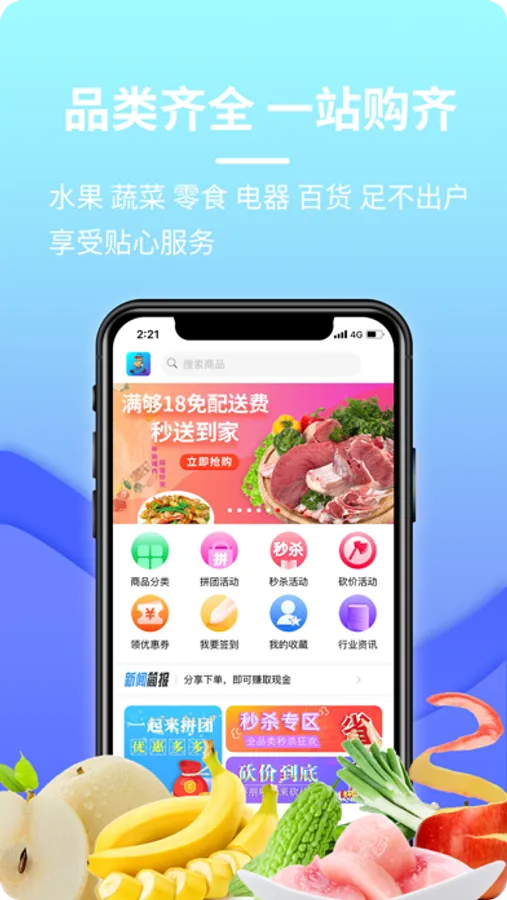4. 蔬菜、水果、零食、电器等多种商品,分类清晰