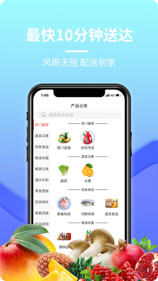 2. 新鲜到家,最快10分钟送达,让您足不出户,秒送到家