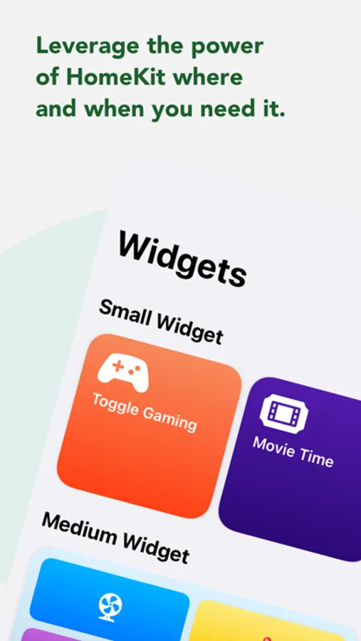 - Widgets for putting actions and scenes onto your iPhone and iPad Home screens.