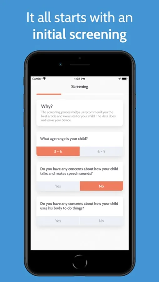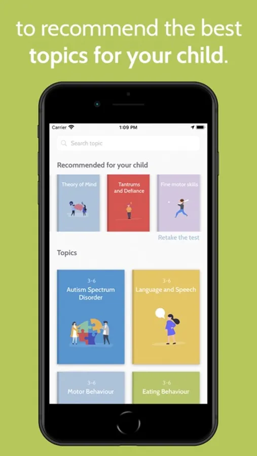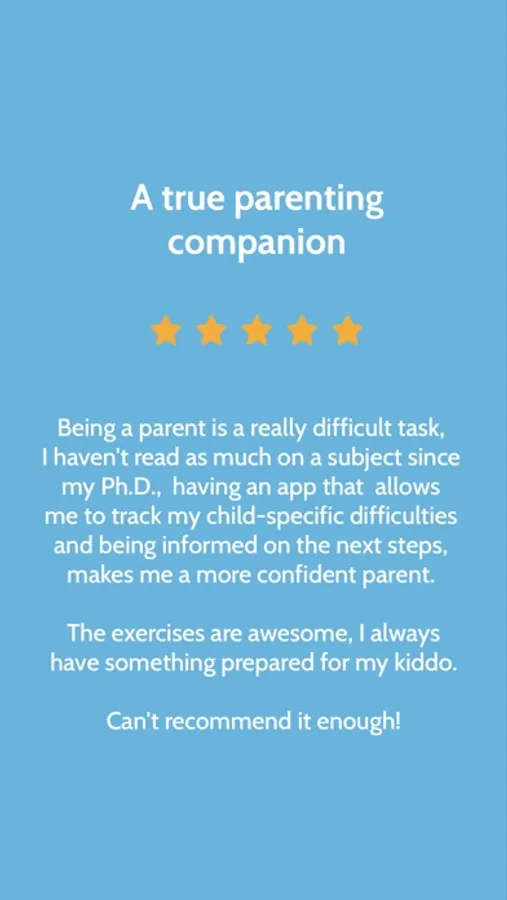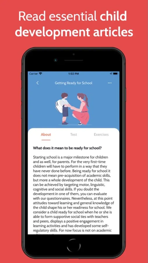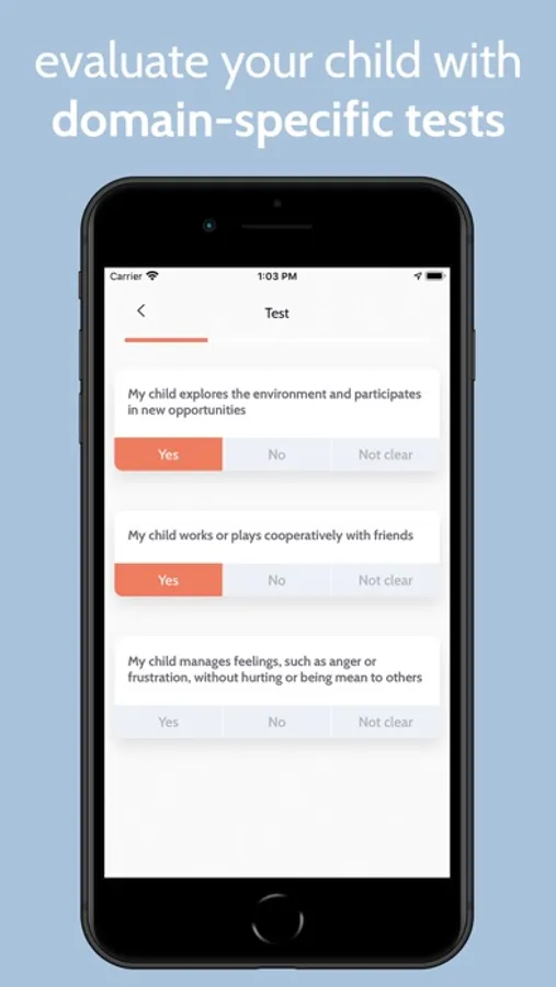 • Domain-specific tests for each topic in the app in order to assess your child's development in specific areas